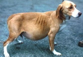 - значительное снижение белка в крови собаки.