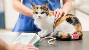 При физикальном обследовании врач может выявить шумы в сердце, увеличение щитовидной железы, уменьшение в размере почек, неврологический дефицит. При проведении офтальмоскопии – выраженные изменения глазного дна. Измерение артериального давления у кошек происходит с помощью специального тонометра и маленькой манжеты, которая накладывается на хвостовую артерию.