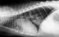 Рентген грудной клетки. Рентгеновский снимок выполняют в двух проекциях – когда животное находится в положении лежа на боку и лежа на животе.