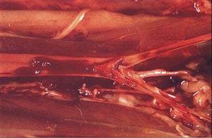 Наиболее часто у кошек встречаются тромбоэмболии брюшной аорты в месте ее ветвления на бедренные артерии (трифуркации аорты).