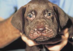 Заболевание возникает у щенков в возрасте от 3 недель до 4 месяцев. Характерно острое течение, внезапное начало симптоматики. Предрасположены щенки такс, золотистых ретриверов, лабрадоров, пойнтеров и биглей. Также заболевание регистрируется у собак других пород, метисов, иногда у взрослых особей. Часто заболевает несколько щенков в помете.