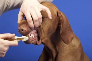 Во время осмотра ротовой полости ветеринарный врач оценит состояние слизистой оболочки, десен, зубов, выявит подвижные зубы, зондирует придесневые карманы, произведет их очистку и почистит зубы собаки от налета и зубного камня. Подвижные зубы обычно рекомендуется удалять, а зубы, поврежденные кариесом – пломбировать.