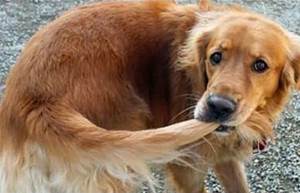 Собаки нередко «ловят хвост» – бегают по кругу малого радиуса. При этом, изловив хвост, собака может кусать и грызть его.