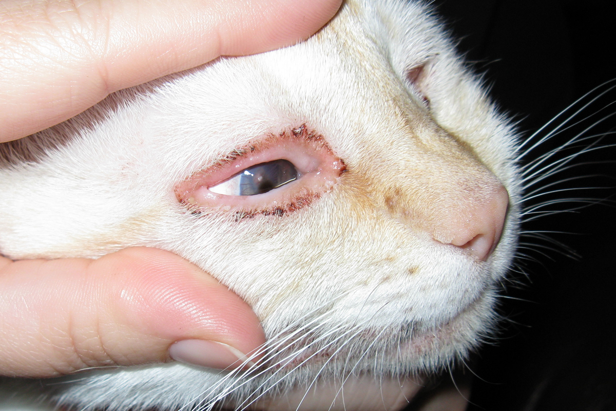 - Царапины, ссадины или другиее повреждения роговицы (например, у кошек после драки).