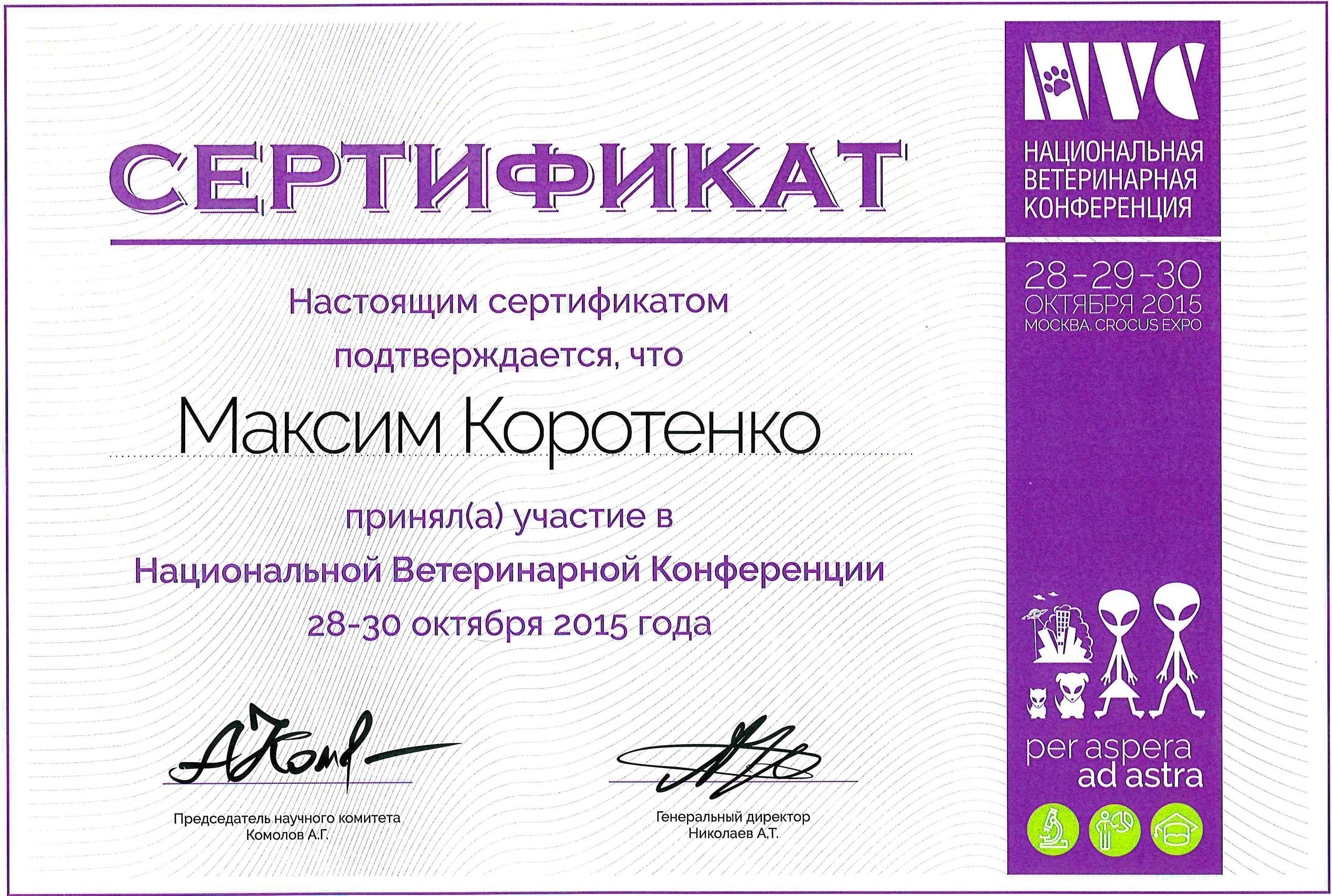 - Участник Всероссийской научно-практической травматолого-ортопедической ветеринарной конференции в г. Курган.