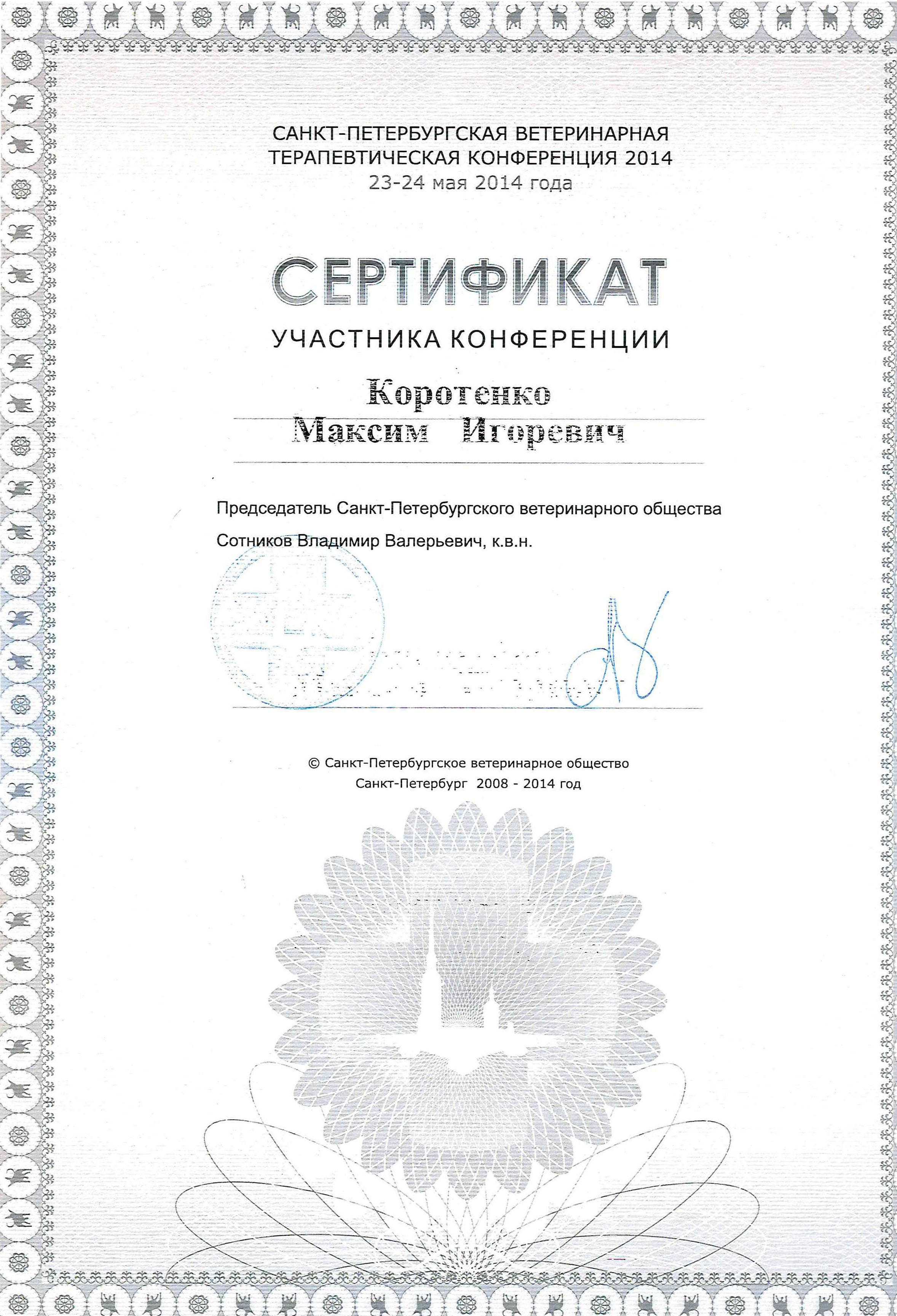 С 2014 года — слушатель конференций Санкт-Петербургского ветеринарного общества.