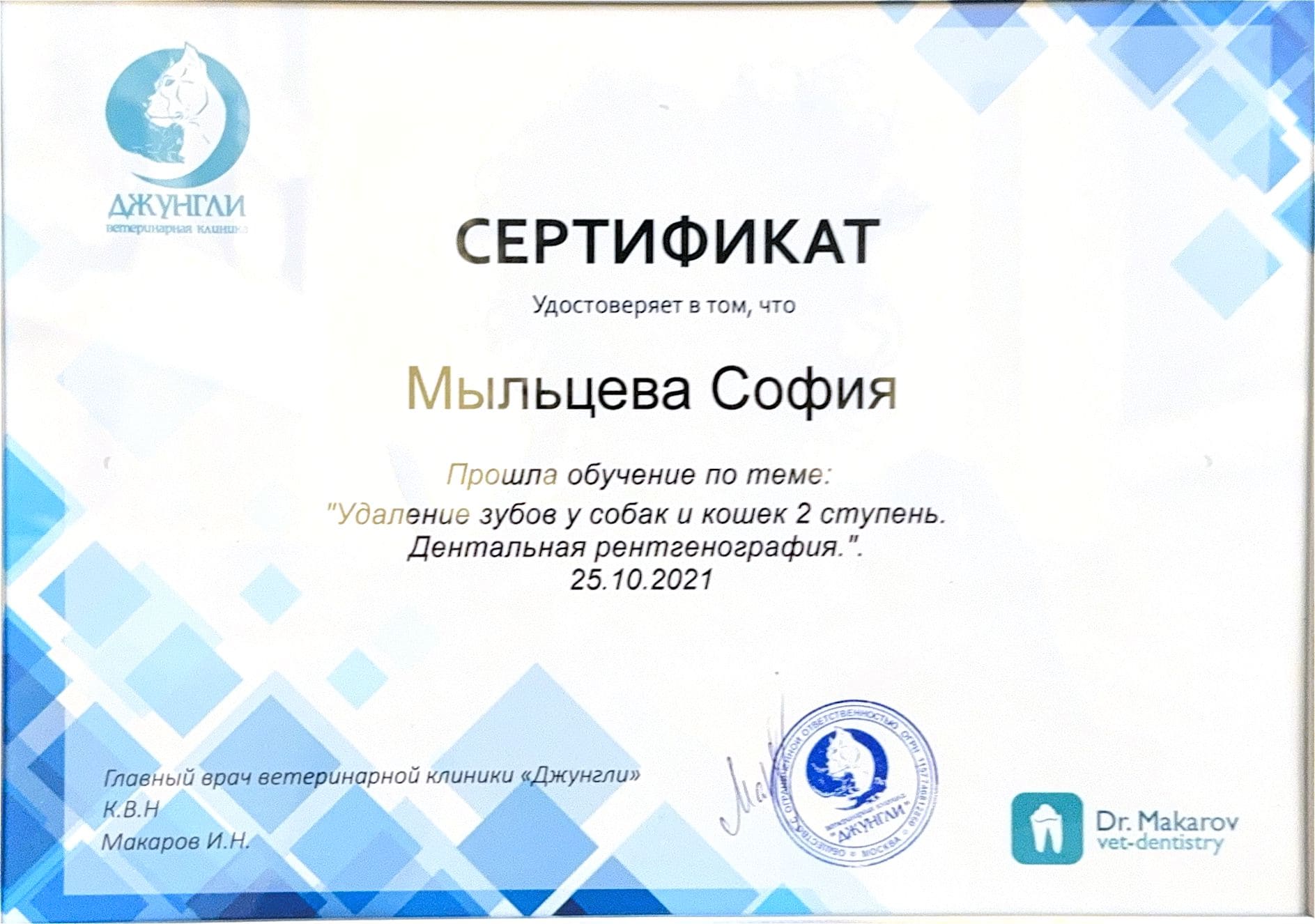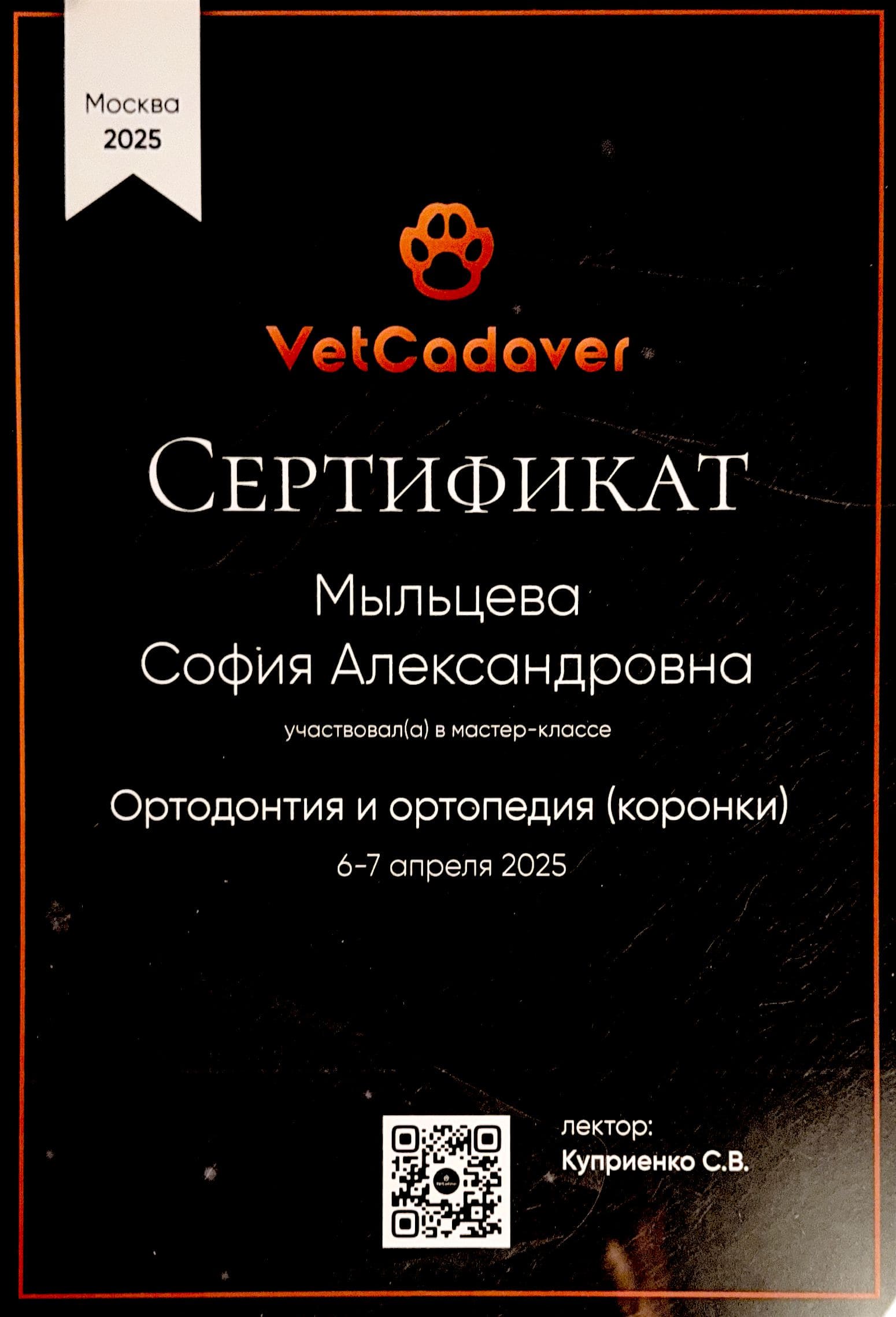 - Повышение квалификации «Ветеринарная ортодонтия. Коронки» (руководитель Куприенко С. В.).