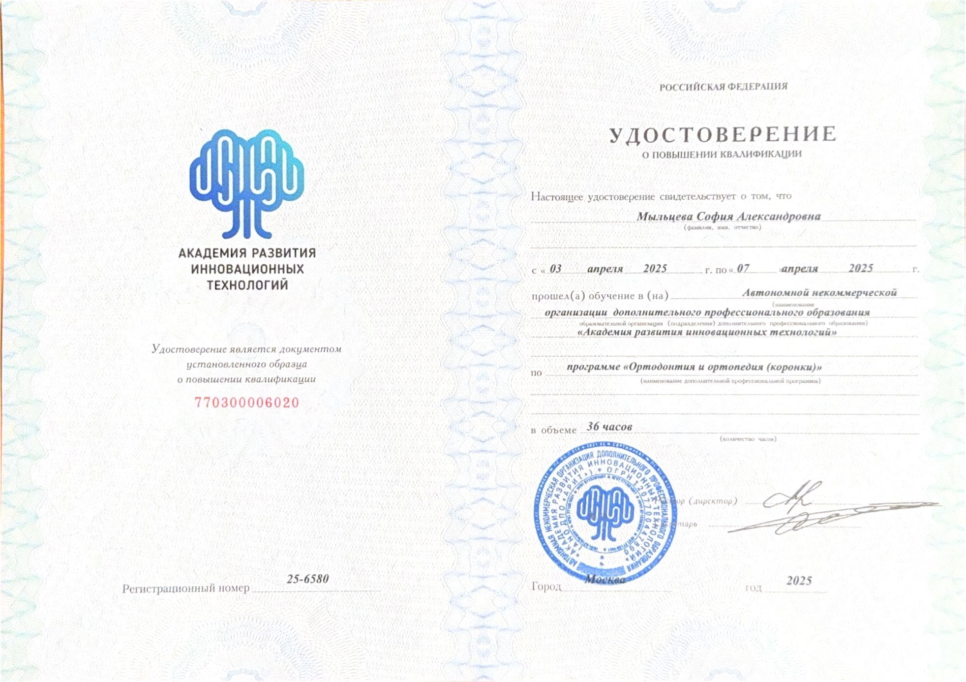 2022–2025 годы — врач-стоматолог в ВК «Биоконтроль».