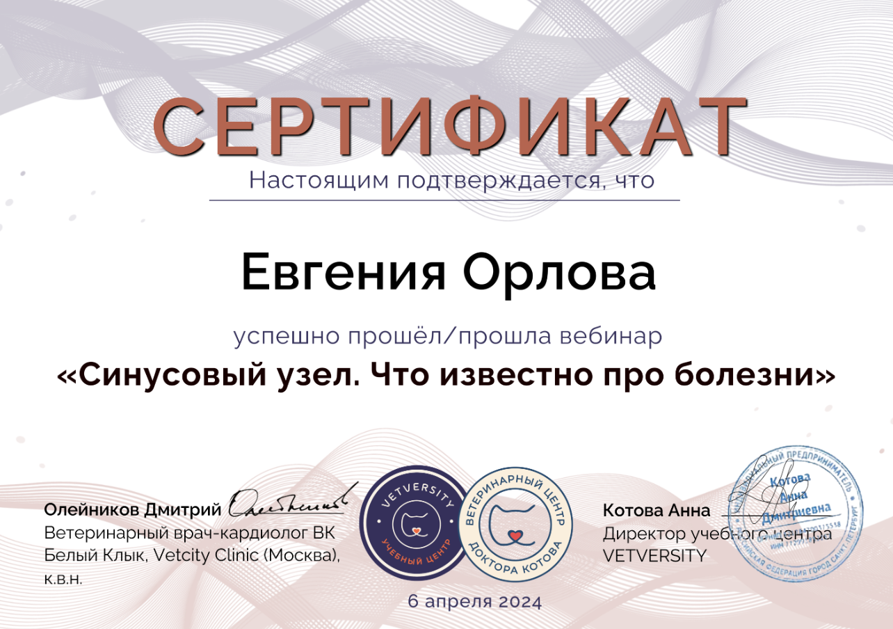 - Вебинар «Синусовый узел. Что известно про болезни» в учебном центре Vetversity.
