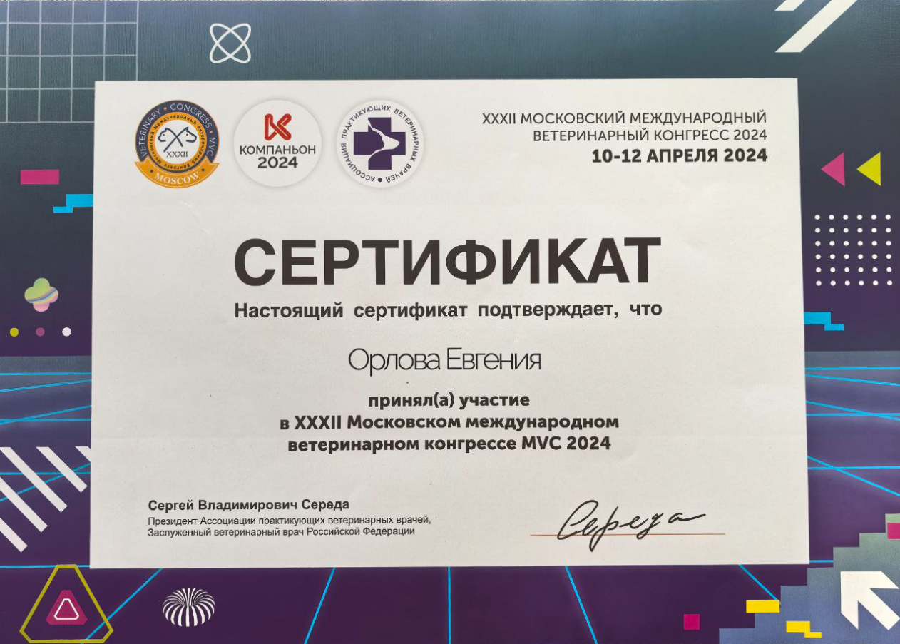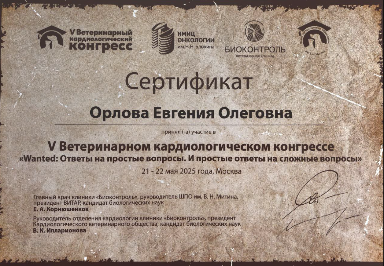 - Участие в V Ветеринарном кардиологическом конгрессе «Ответы на простые вопросы. И простые ответы на сложные вопросы».