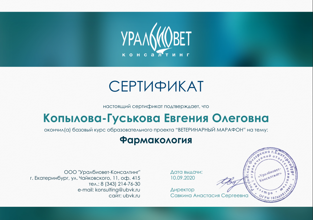 - Базовый курс образовательного проекта «Ветеринарный марафон» на тему «Фармакология».