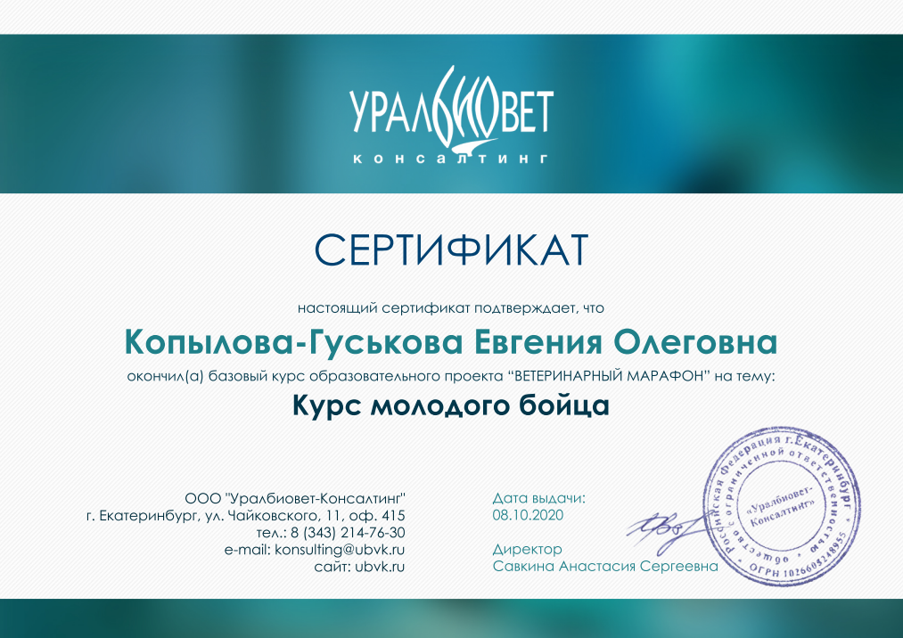 - Базовый курс образовательного проекта «Ветеринарный марафон» на тему «Курс молодого бойца».