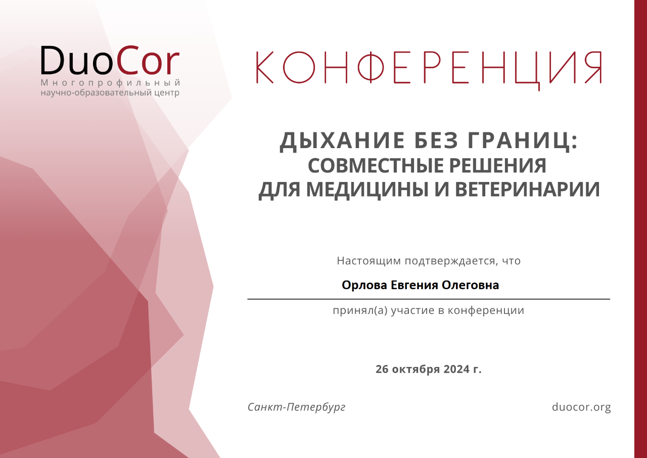 - Участие в конференции «Дыхание без границ: совместные решения для медицины и ветеринарии» на базе многопрофильного научно-образовательного центра DuoCor.