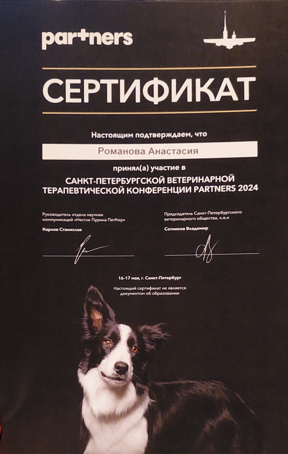 - Участник Санкт-Петербургской ветеринарной терапевтической конференции Partners.