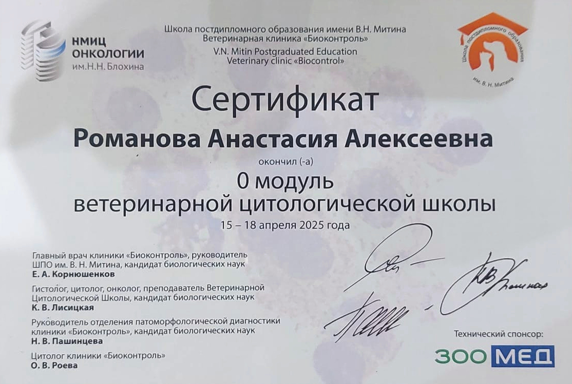 - Завершение модуля 0 ветеринарной цитологической школы постдипломного образования имени профессора В. Н. Митина.