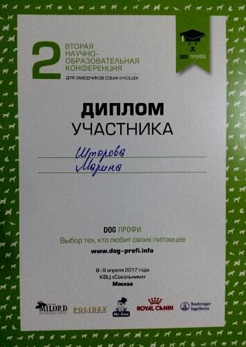 - Участие во 2-й научно-образовательной конференции для заводчиков собак и кошек.